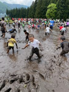 曇り空ではありましたが、気温も例年並みで子供たちは笑顔で苗植えを行っていました。泥の匂いや感触、体を洗う時の雪解け水の冷たさなどを実際に体験して、農家の方の大変さや自然の恵みを感じ取れたのではないかと思います。