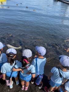 ミドル(年中)さんは、初日、富士五湖ツアーで五つの湖のお勉強!!実際に湖に行って体験しました。2日目は山中湖1週、14キロの行程をなんと数時間で踏破いたしました。