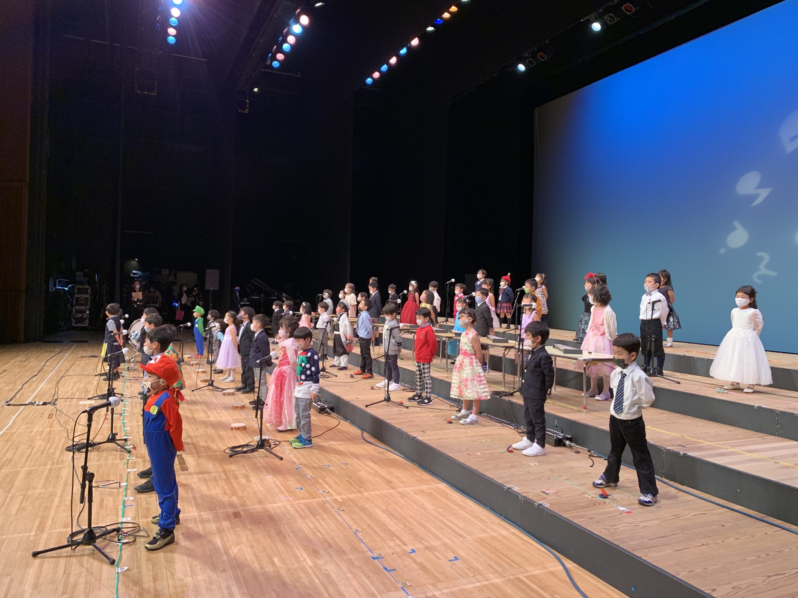 セミジュニアは初めての大きくてキラキラしている舞台に、驚いた様子もありましたが、幕が開いた瞬間大きな声で上手にお歌を歌ったり、楽器を「チョンチョンパッパ」と合わせて、頑張りました。
