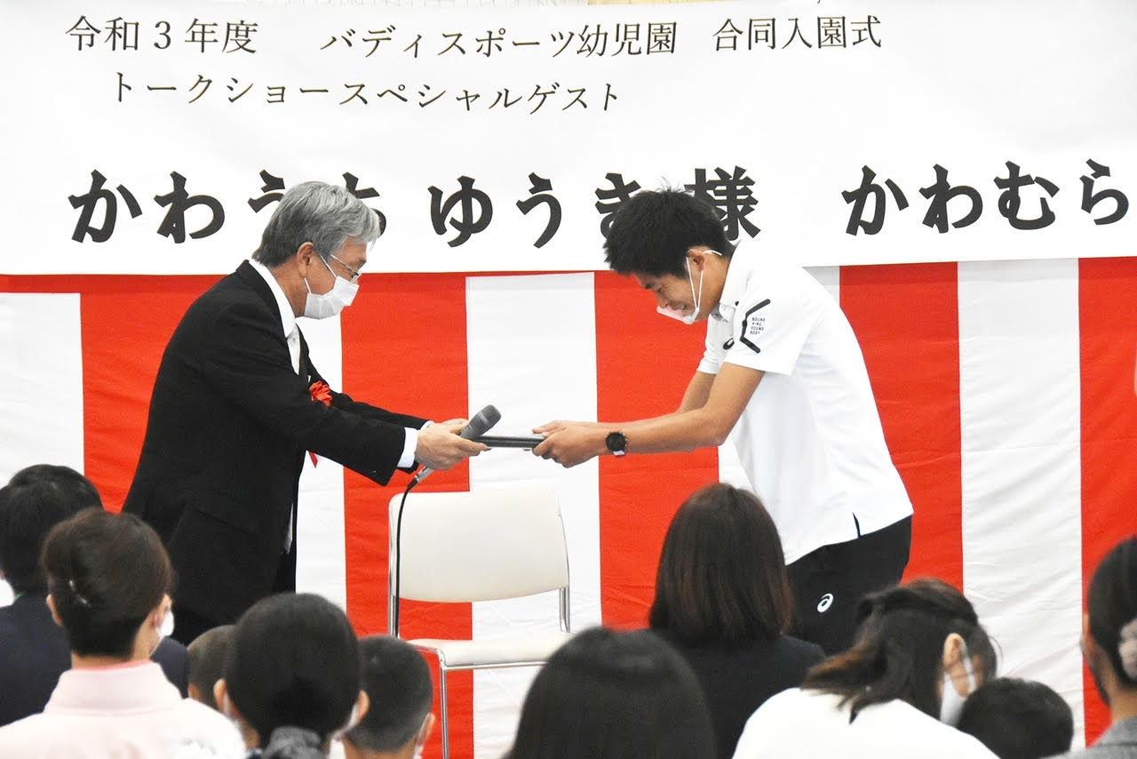 最後には、サプライズとして理事長先生より、川内選手へ世界記録樹立の記念に功労賞が贈られました!