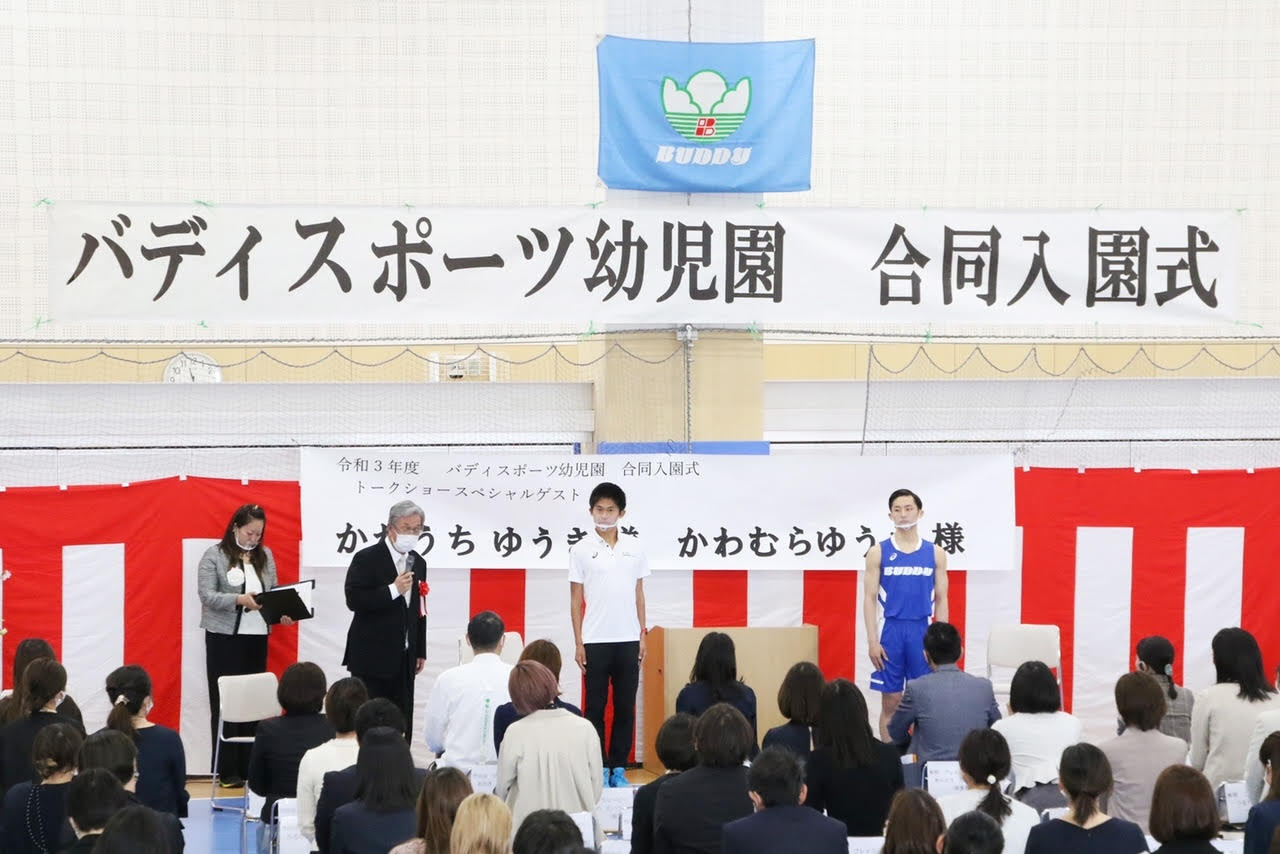 バディ出身プロランナーの川内 優輝選手とバスケット界の若きスター河村 勇輝選手をお招きしてトークショーを行いました。